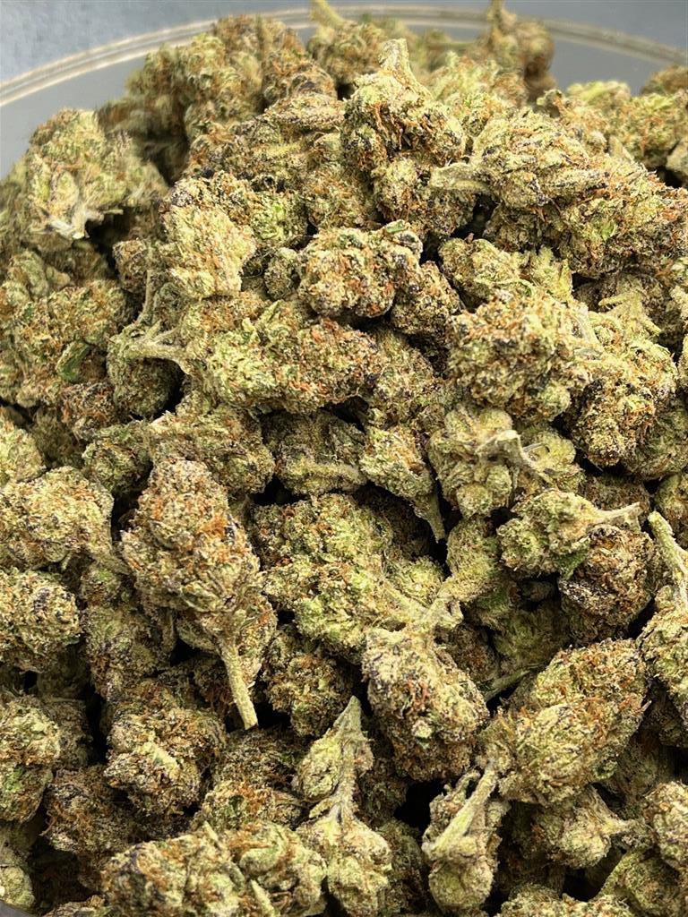 Tested 27.10% Total THC!!! Raspberry Runtz is an indica dominant hybrid strain (70% indica/30% sativa) created through crossing the delicious Raspberry Kush X White Runtz X Space Cake strains. This insanely tasty combination creates the perfect nighttime treat that will have you feeling kicked back and ready to tuck in for the evening if it suits your fancy. The flavor of Raspberry Runtz is much like what you'd expect with its name and parentage, with a blend of sugary sweet raspberry candies accented by bright citrus and fresh strawberries. The aroma is very much the same, with added layers of light earthiness and spicy kush brought in. The Raspberry Runtz high will settle in slowly, beginning with a heady lift that fills you with a happy, stoney sense that has you totally out of touch with reality. As your mind settles into blissful oblivion, your body will begin to drop off into a deeply relaxing state of couchlock that has you feeling completely immovable. Thanks to these effects and its high 24-28% average THC level, Raspberry Runtz is often suggested to treat chronic stress or anxiety, chronic pain, depression and arthritis. This bud has long and tapered, heart-shaped forest green nugs with thin, light orange hairs and chunky, sparkling white crystal trichomes.